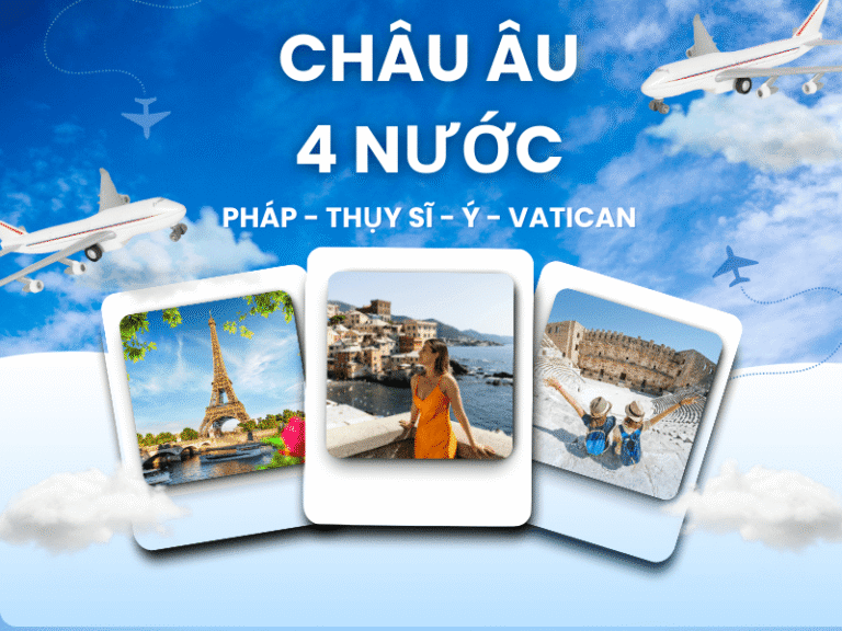 Tour Châu Âu 4 nước độc quyền tại Du Lịch Việt Mỹ, với hành trình khám phá Pháp – Thụy Sĩ – Ý – Vatican, kéo dài khoảng 9-10 ngày mang đến trải nghiệm văn hóa, lịch sử đa dạng với mức giá hợp lý, phù hợp cho người đi lần đầu.