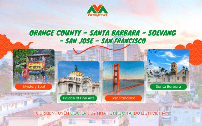 NGÀY 01: ORANGE COUNTY – SANTA BARBARA – SOLVANG – SAN JOSE (Ăn trưa, ăn tối)