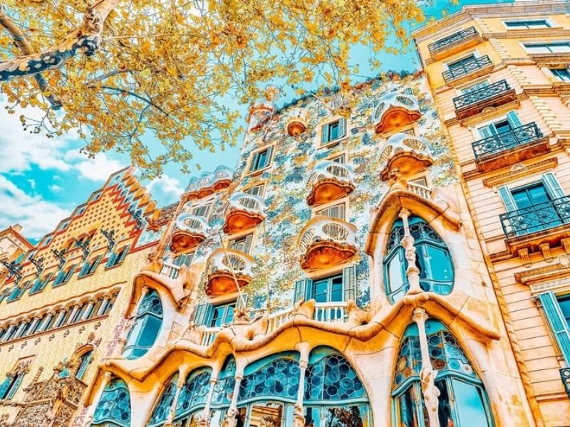 - Tòa nhà của những bộ xương Casa Batllo – công trình nổi tiếng với những ban công hình dáng sọ người của kiến trúc sư đại tài Antoni Gaudi và Casa Amatller- tòa nhà tráng lệ mang tính thẩm mỹ độc đáo với một bảo tàng socola nhỏ. (tham quan bên ngoài ).